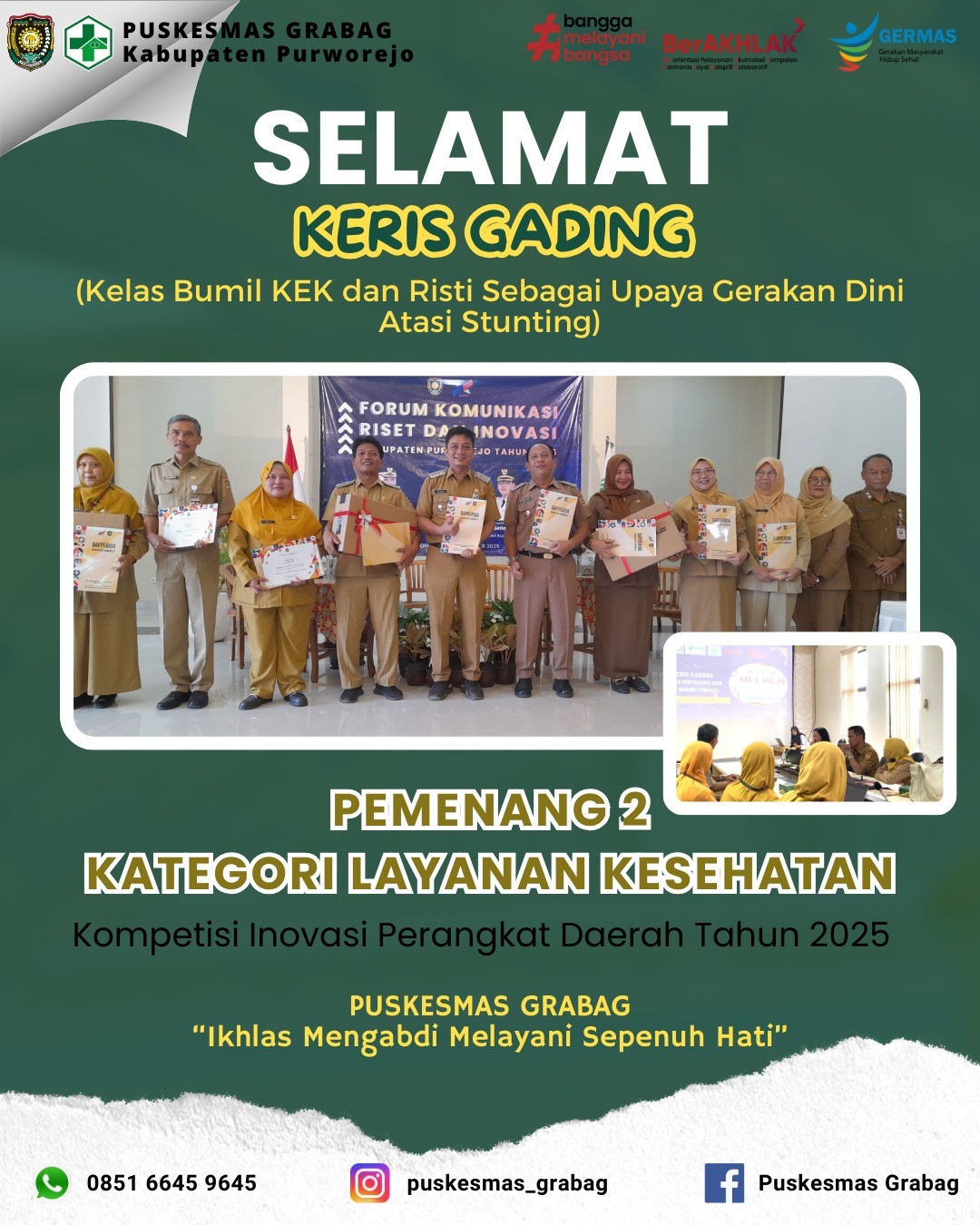 - Puskesmas Grabag Raih Juara 2 Kompetisi Inovasi Perangkat Daerah Kategori Layanan Kesehatan Tahun 2025